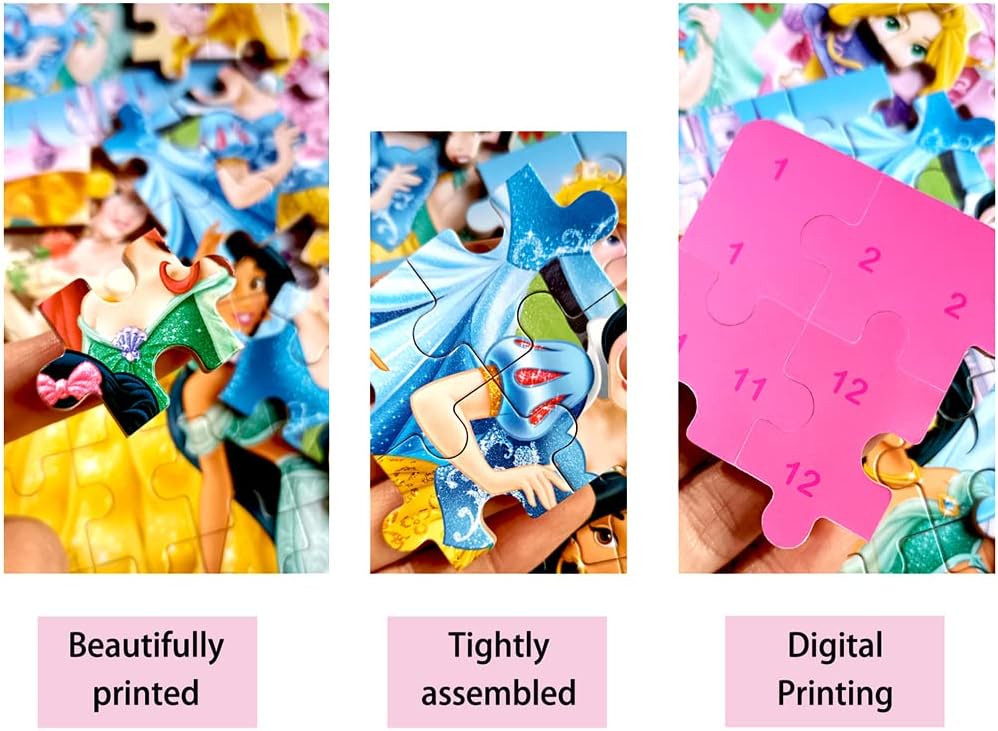 • SAFE MATERIALS: Our Disney Puzzles are Made of Nontoxic and Tasteless Material which are Sturdy Enough and Do Not Tear Easily So Good for a Child. The Die-cuts are Smooth, Allowing for Easy Assembly and Every Pieces Fit Together Well. Also Our Disney Princess Puzzle Pieces on the Back are Numbered to Help Younger Children If Needed.